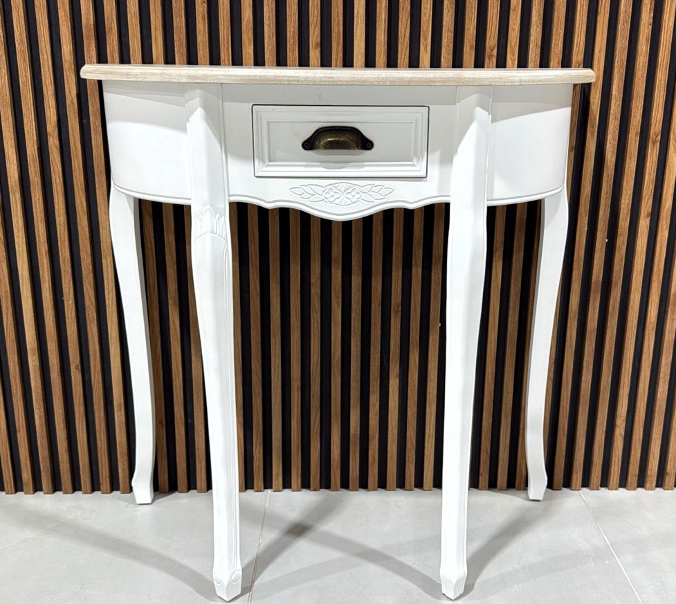 ES UN MUEBLE QUE OPTIMIZA ESPACIOS PEQUEÑOS, SU DISEÑO CURVO Y SOFISTICADO ES PERFECTO PARA UBICARLO CONTRA LA PARED APORTANDO CALIDEZ Y DANDO ESE TOQUE VINTAGE A TU HOGAR. CONFECCIONADO EN MADERA OLMO Y MDF