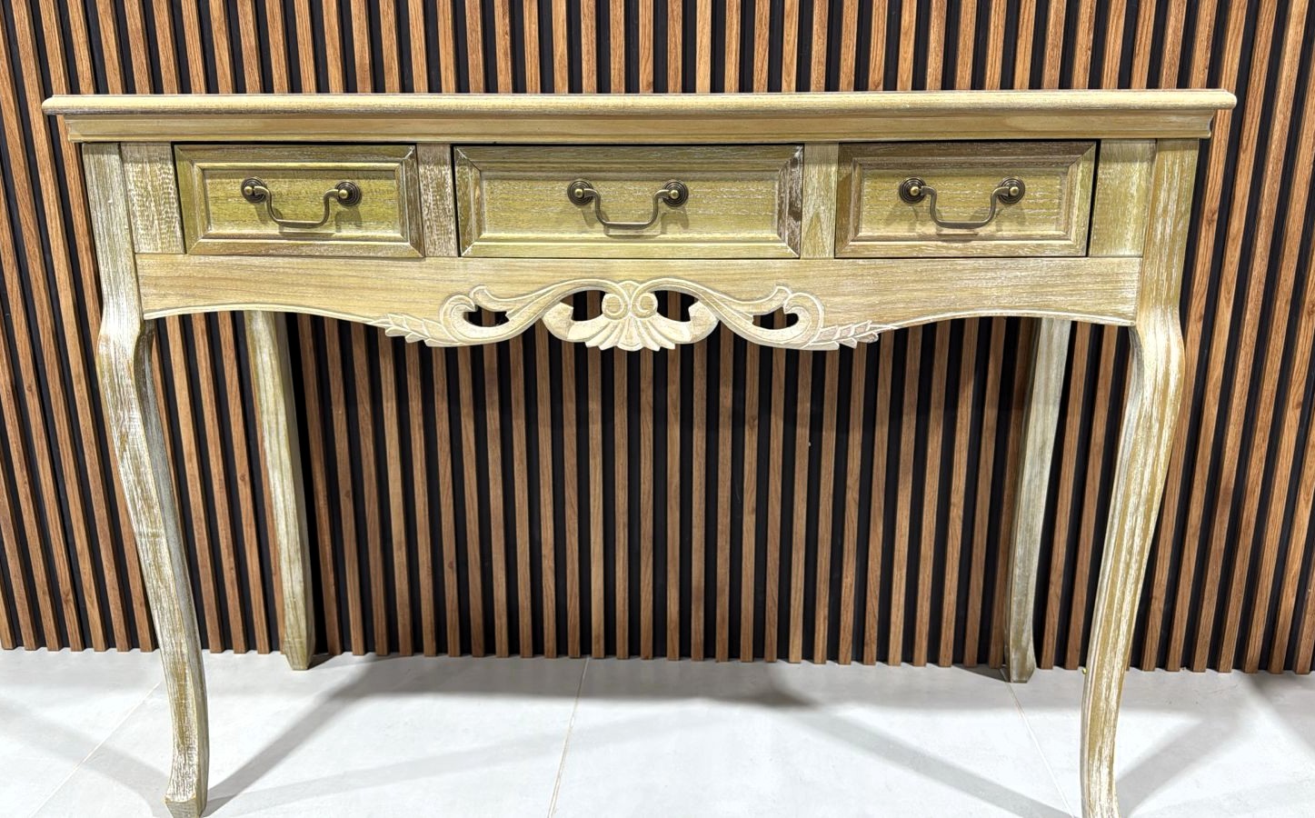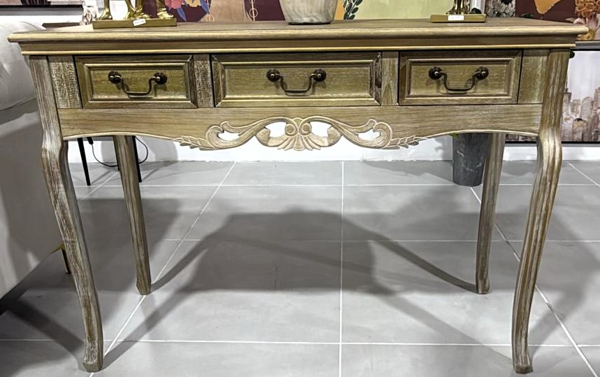 COMBINA HISTORIA Y FUNCIONALIDAD CON ESTE HERMOSO ARRIMO VINTAGE DE 3 CAJONES, SUS DETALLES UNICOA Y SU ACABADO DESGASTADO LE OTORGAN PERSONALIDAD IDEAL PARA EL RECIBIDOR DE TU HOGAR. CONFECCIONADO EN MADERA OLMO Y MDF